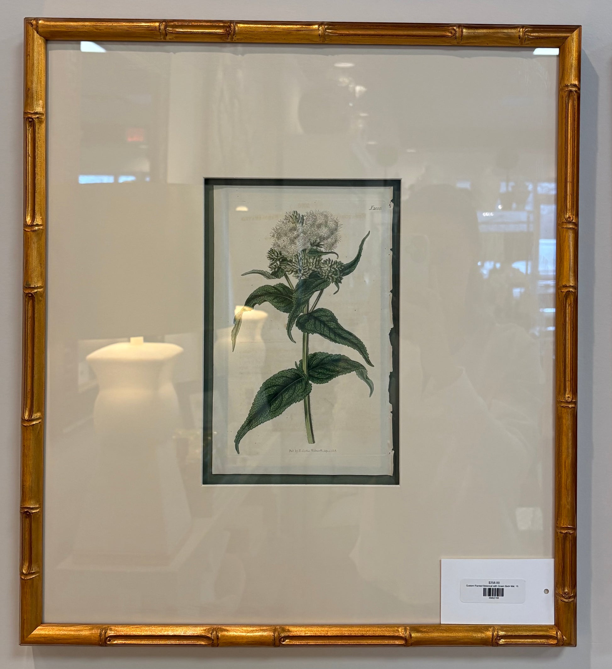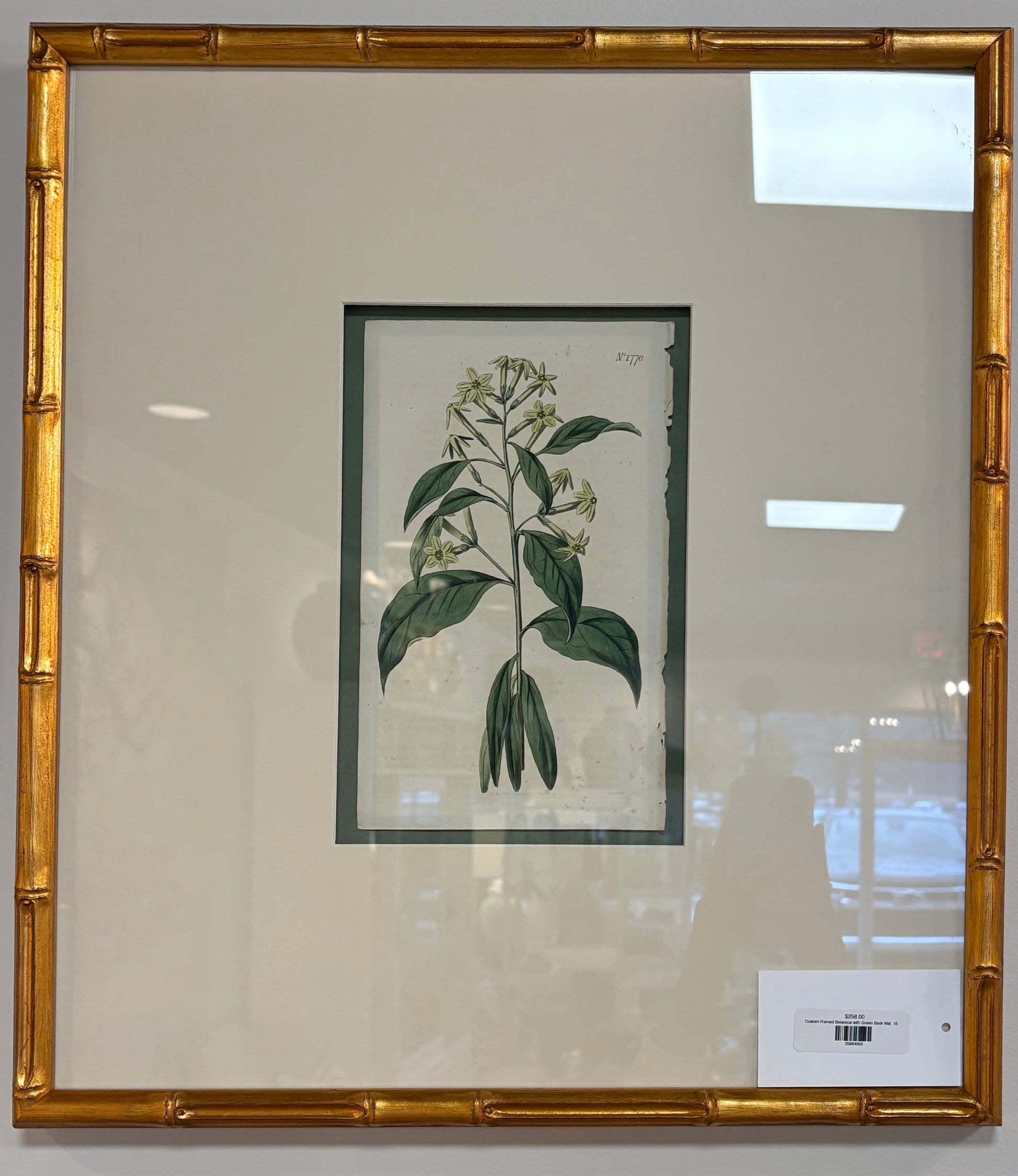 Custom Framed Botanical with Green Back Mat, 16x18